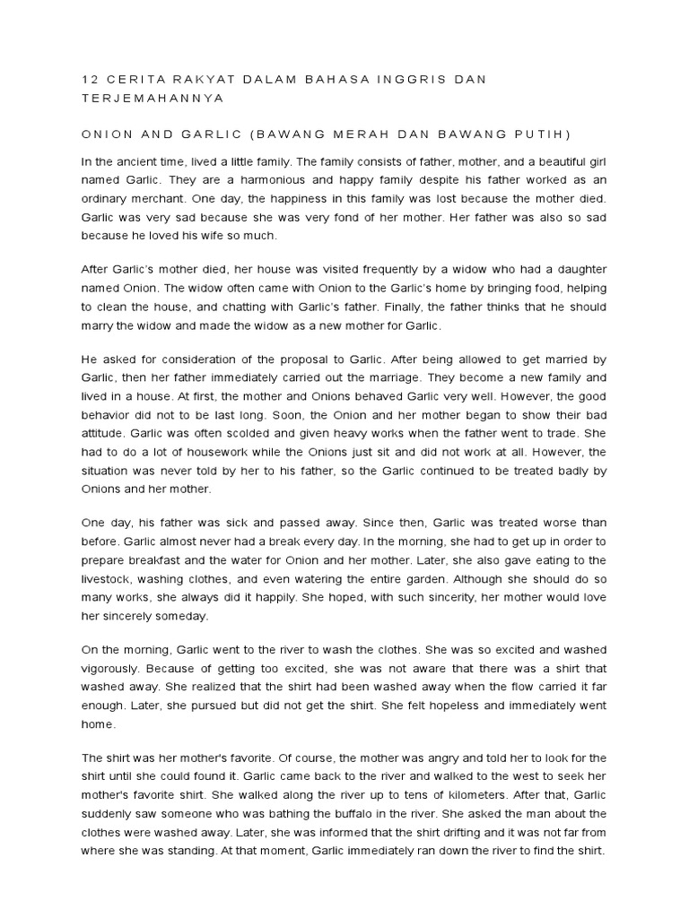 12 Cerita Rakyat Dalam Bahasa Inggris Dan Terjemahannya Pdf Cakes Nature
